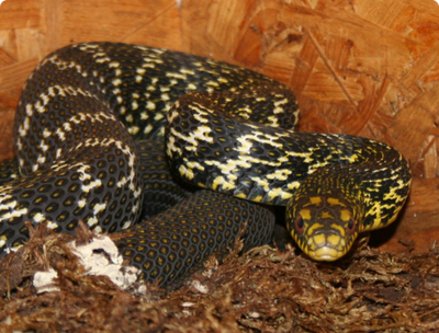 Размер: от 150 до 170 см (известны случаи до 240 см). Эта змея подвергается довольно радикальному преобразованию цвета от желто-коричневой окраски молодых особей в темно-коричневую или черную с ярко-желтыми узорами у взрослых.