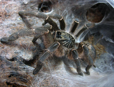 Имеет агрессивный характер и достаточно токсический яд, так что ни в коем случае не стоит брать паука на руки.