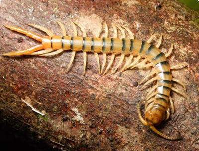 Это мелкий вид сколопендр, взрослые особи достигают в длину от 8,5 до 13 см.