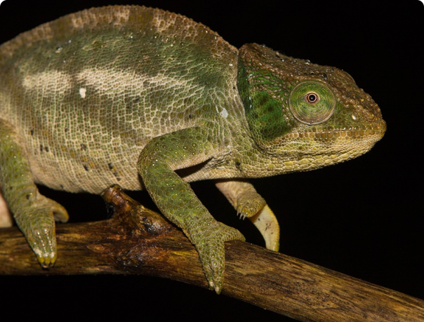Питается насекомыми. Размер насекомого напрямую зависит от размера самого хамелеона.