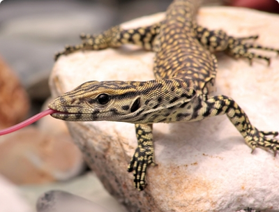Кормить следует насекомыми, червями, грызунами (мыши, крысы), цыплятами и рыбой. Насекомых нужно давать несколько раз в неделю, иногда обваливая их в кальции и витаминных подкормках. Цыплят и грызунов лучше скармливать целиком, поскольку в кусках мяса содержится лишь часть тех элементов, которые необходимы ящерам для нормального роста и развития.