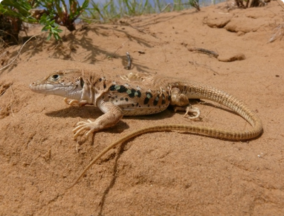 Обитает в пустынях, полупустынях и горах, на высоте до 1700 м. Поселяется на закрепленных песках. Активна днем. Быстро бегает и прыгает на расстояние до 50 см. В песках роет короткие и неглубокие норки. Укрывается также в норах грызунов, трещинах в почве и пустотах под камнями.