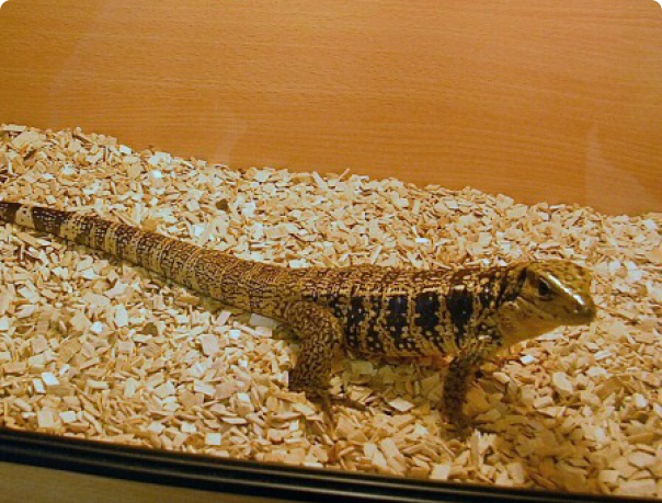 Тегу содержат в просторных горизонтальных террариумах, где в качестве субстрата используют влажную почвенную смесь и дроблёную кору.Террариум следует оборудовать несколькими укрытиями из камней, коряг, кусков коры. Тегу также необходим большой водоём для купания. Влажность воздуха поддерживают на уровне 60-70 %.Во время линьки животное опрыскивают из пульверизатора.