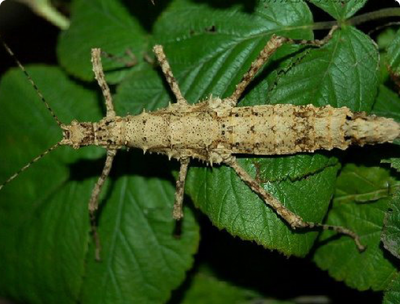 Для содержания примерно 10 взрослых насекомых или примерно 30 нимф подойдёт небольшой террариум размерами примерно 30х30х45см. На дно следует насыпать около 2-3см субстрата. В качестве него можно использовать торф, вермикулит или кокосовый субстрат. Внутри террариум можно оформить различными ветками, корягами или растениями, а также необходимо поместить кормовые растения – ежевику, малину, плющ или дуб. Ветви этих растений лучше поместить в небольшую ёмкость с водой, чтобы они дольше не высыхали. Горлышко ёмкости должно быть узким, чтобы насекомые не смогли попасть внутрь и утонуть. Температура в террариуме должна поддерживаться на уровне 24-27°C, а влажность в пределах 70-80%. Раз в 1-2 дня субстрат и листья растений следует слегка опрыскивать.