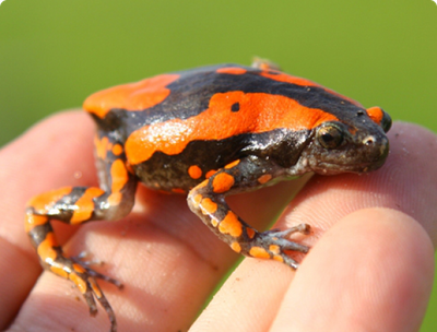 По черному или темно-серому фону спины разбросаны оранжевые или красные пятна неправильной формы. По бокам тела от глаз к задним конечностям проходят две широкие ярко-оранжевые или красные полосы. Рисунок брюха составляют беловатые пятна на сером фоне. Такая контрастная окраска имеет явный предупреждающий характер: кожные выделения этих амфибий ядовиты.