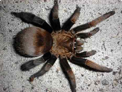 Основная окраска взрослых самцов чёрная, размер тела достигает 37мм, карапакс - примерно 16х14мм, а длинна задней (четвертой) ноги до 72мм. Самки крупнее – до 7см, в размахе ног приблизительно 15см и окрашены в основном в коричневый цвет.