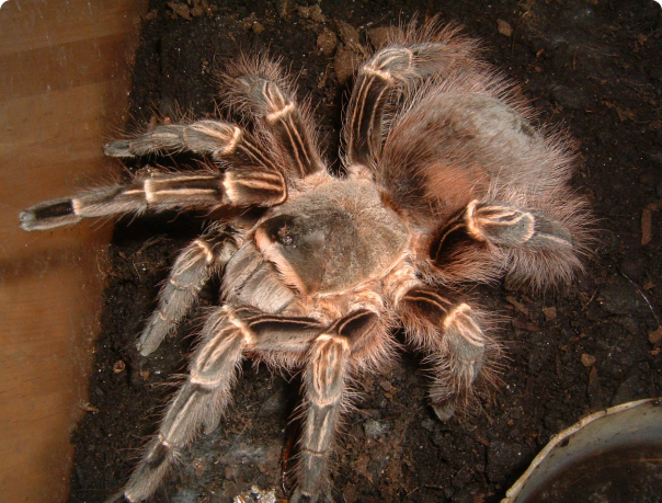 В террариуме не требуется никакого дополнительного оформления. По желанию в жилище паука можно разместить бревна или кору деревьев.