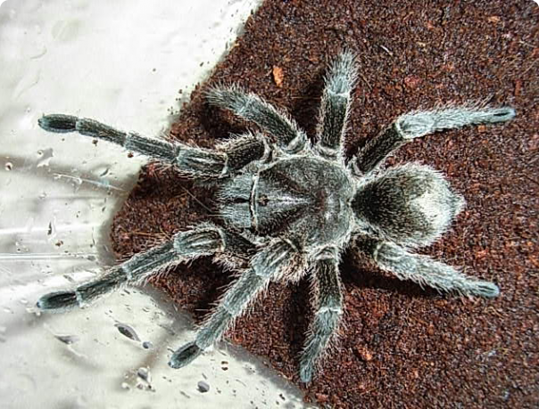 В качестве террариума можно использовать горизонтальные пластиковые контейнеры. Стандартные размеры жилища для взрослой особи – 30x30x30 сантиметров. Для взрослых пауков необходимо устанавливать поилки с чистой водой. В качестве субстрата используют кокосовый субстрат, его слоя должно быть достаточно для того, чтобы паук рыл норы. Террариум можно задекорировать кусочками коры или корягами.