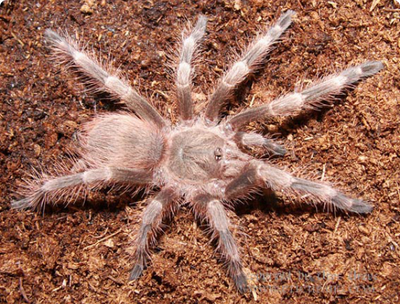 Относительно крупный паук. Длина тела достигает 8-9 см, размах лап до 20 см. Окраска тела паука светлая с розовым оттенком.