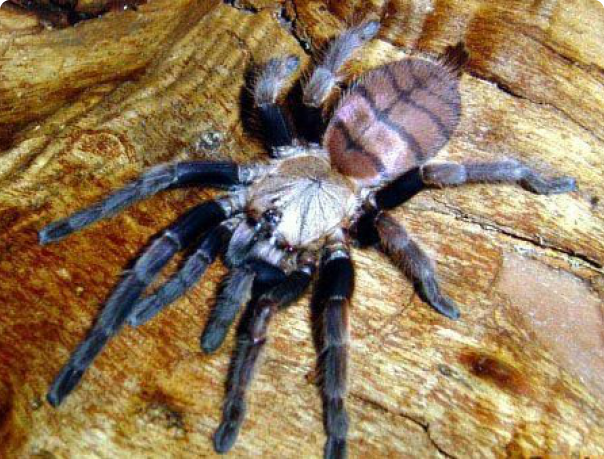 Этот сравнительно крупный паук достигает длины 7-9 сантиметров по телу, 15-18 см в размахе лап. Великолепный азиатский птицеед. Карапас золотисто-коричневый, на оранжевом с металлическим красным отливом брюшке – красивые чёрные шевроны.