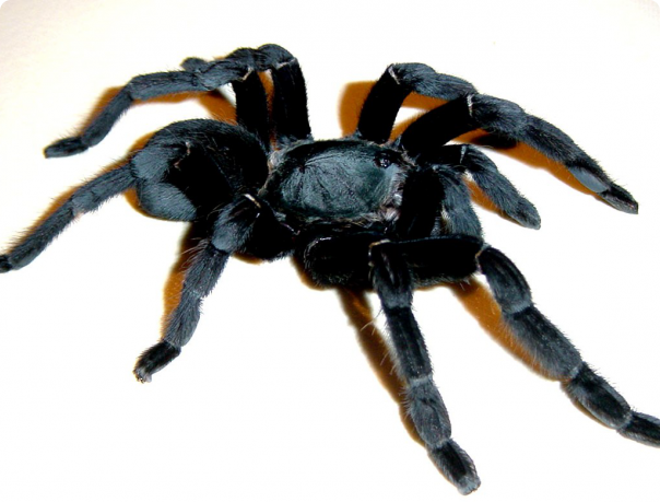 Окраска тела от темно-коричневого до черного. Размеры тела взрослых особей до 7 см, а в размахе ног до 15 см.