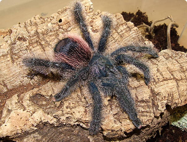 Кормить паука нужно 2-3 раза в неделю кормовыми насекомыми подходящего размера (с тело паука, без учета лап).