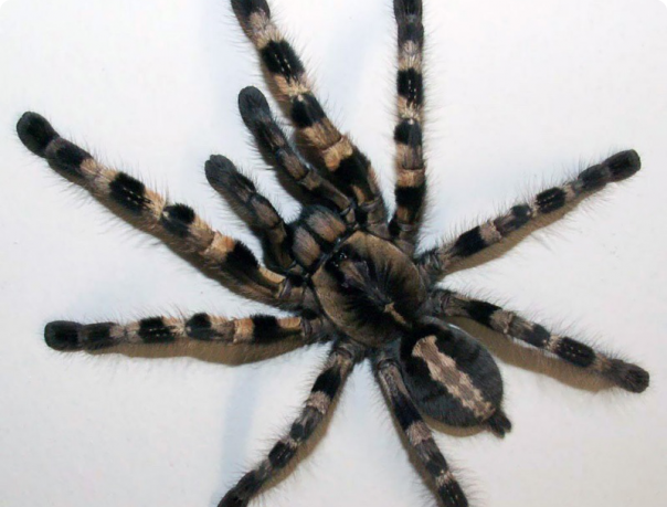 Данный древесный птицеед обладает светло-темной тигровой окраской своего тела и ног, что довольно типично для данного вида Poecilotheria.