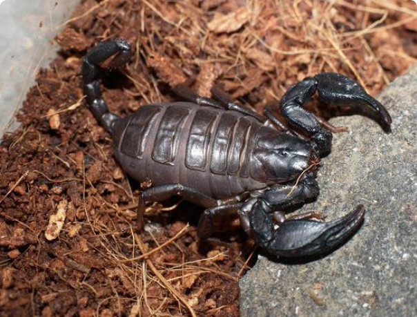 Жилье: Для содержания одного скорпиона подходит террариум размерами: 46х30х40 см. Скорпионы любят прятаться в норах, в древесине или под камнями, поэтому вы должны обеспечить ему подходящий субстрат (например, 70% мха сфагнума, 20% перегноя с песком, 10% кора орхидей). Какой бы субстрат вы не положили в террариум, по высоте он должен быть 7,5-10 см, сверху надо накидать древесную кору.