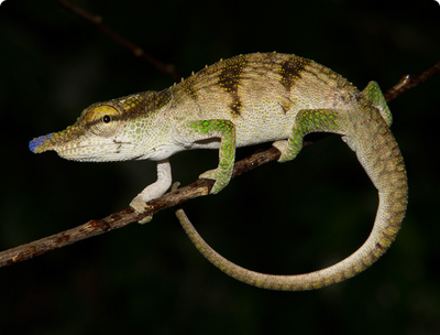 Питается насекомыми. Размер насекомого напрямую зависит от размера самого хамелеона.