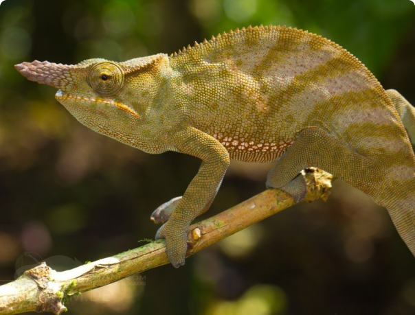 Длина тела самцов доходит до 42 см, самок – до 30 см.Этиххамелеонов отличают белые или желтые губы, очень однородная чешуя и белые полосы на теле.Спинной гребень у этих животных состоит из больших, плотно стоящих друг за другом шипов, постепенно уменьшающихся по направлению к хвосту.Самки гораздо ярче самцов.