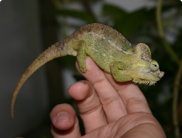 Хамелеон питается мелкими насекомыми и пауками, и делает это, расширяя язык, чтобы захватить добычу. Язык способен удлиняться до более половины длины тела.