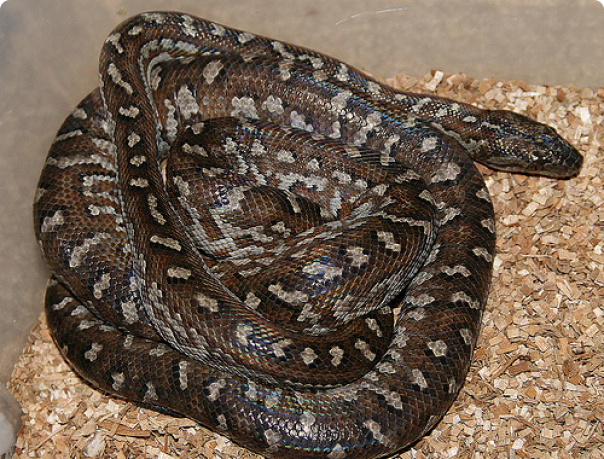 Окраска изменчива от серо-коричневой и серо-голубой до красно-коричневой с темными, белыми и желтыми пятнами, образующими красивый узор. Брюхо более светлое в размытых пятнах и крапинах. Чешуя тела обладает сильным радужным блеском.