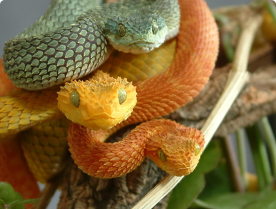 Продолжительность жизни шершавой древесной гадюки составляет 15 лет.