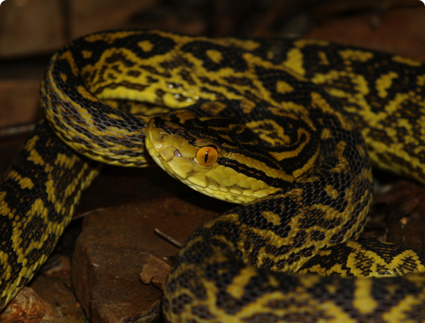 Необходим террариум горизонтального типа для субтропических животных с локальным, направленным вниз подогревом (лампа накаливания, зеркальная лампа) или нижним подогревом: термошнур, термоковрик. Минимальный размер террариума для одной змеи – 100×80×50 см (без учета высоты светильника). Температура в теплом углу, в точке прогрева, днем до 32-35°С. В холодном углу – 20-22°С. Ночью: до 25°С в теплом углу и до 18°С – в холодном. Фоновая температура днем – 25-28°С, ночью – 20-24°С. В террариуме устанавливают ветви, на грунт ставят поилку. Необходимую высокую влажность поддерживают с помощью дождевой установки, или генератора тумана подключенных через реле времени и работающих 1-2 раза в сутки по 1-2 минуты. Содержать лучше раздельно или группой – 1 самец на 1-2 самки.