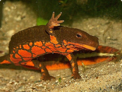 Эти тритоны питаются личинками стрекоз и брюхоногими моллюсками.