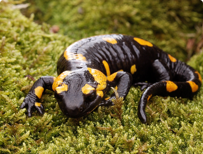 Огненная саламандра - ночное животное, не любит жары и прямых солнечных лучей. Устойчива к низким температурам, полное оцепенение у нее наступает при 0'С. Днем скрывается в мшистой подстилке леса, норах, под упавшими деревьями, трухлявых пнях или под камнями. Хорошо помнит топографию своего охотничьего участка. Возвращаясь домой, она пользуется зрительными ориентирами. Огненная саламандра может жить на одном таком участке много лет. На зимовку уходит в октябре-начале декабря. Зимует группами (до нескольких десятков) под корнями деревьев, в трухлявых пнях, под листьями, вблизи теплых подземных источников, среди камней, небольших пещерах, штольни старых шахт. Из спячки саламандра выходит в марте-мае, когда температура воздуха становится 8-10'C. Голос самца огненной саламандры можно услышать в брачный период (негромкий писк, скрип, глухой свист), который систематически повторяется через короткие интервалы времени. Таким образом самец находит своих соплеменников.